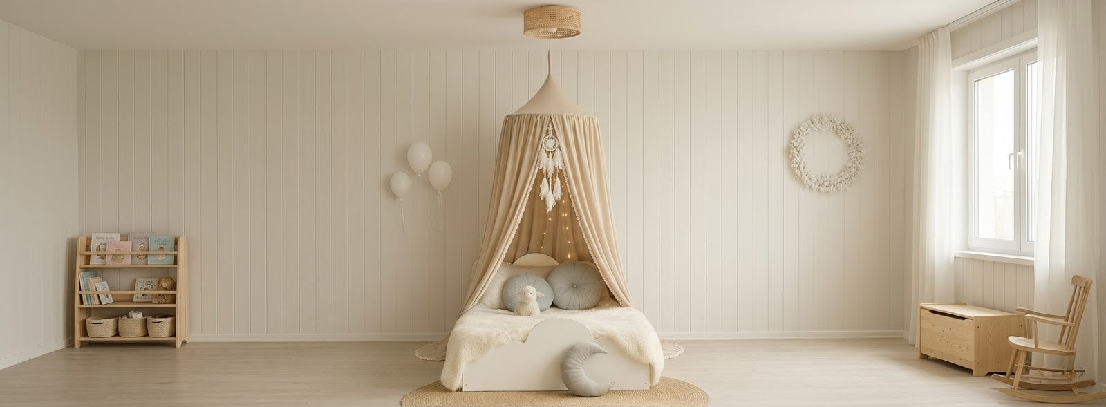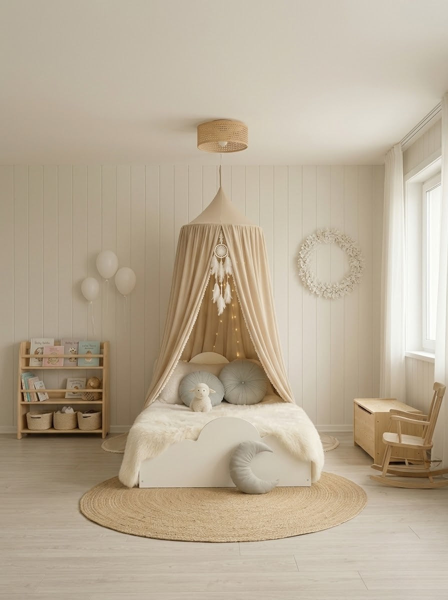 - Versatile: sopra il letto, come tenda da lettura, angolo gioco o set fotografico.